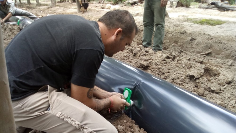 Estas mangas se colocan en el campo conectadas a una fuente de agua (bomba o canal) y, una vez llenas, se perforan estratégicamente para liberar el agua directamente hacia los surcos o franjas de cultivo. Su operación a baja presión asegura un suministro uniforme y evita daños por exceso de presión.